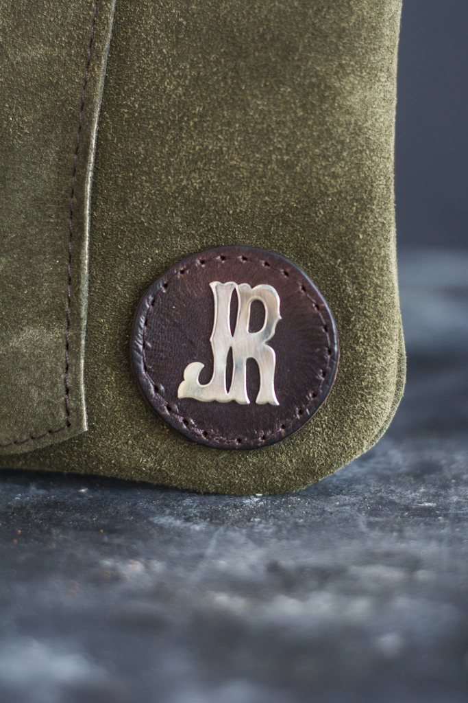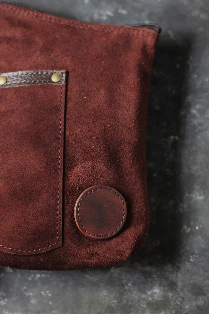Yerbera Sobre en cuero gamuzado con porta bombilla e Iniciales en alpaca